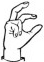 На ћирилици написано МИЊА КУРМАЗОВИЋ састоји се из 14 слова [?]. Исписано ћириличном једноручном азбуком за глувонеме: